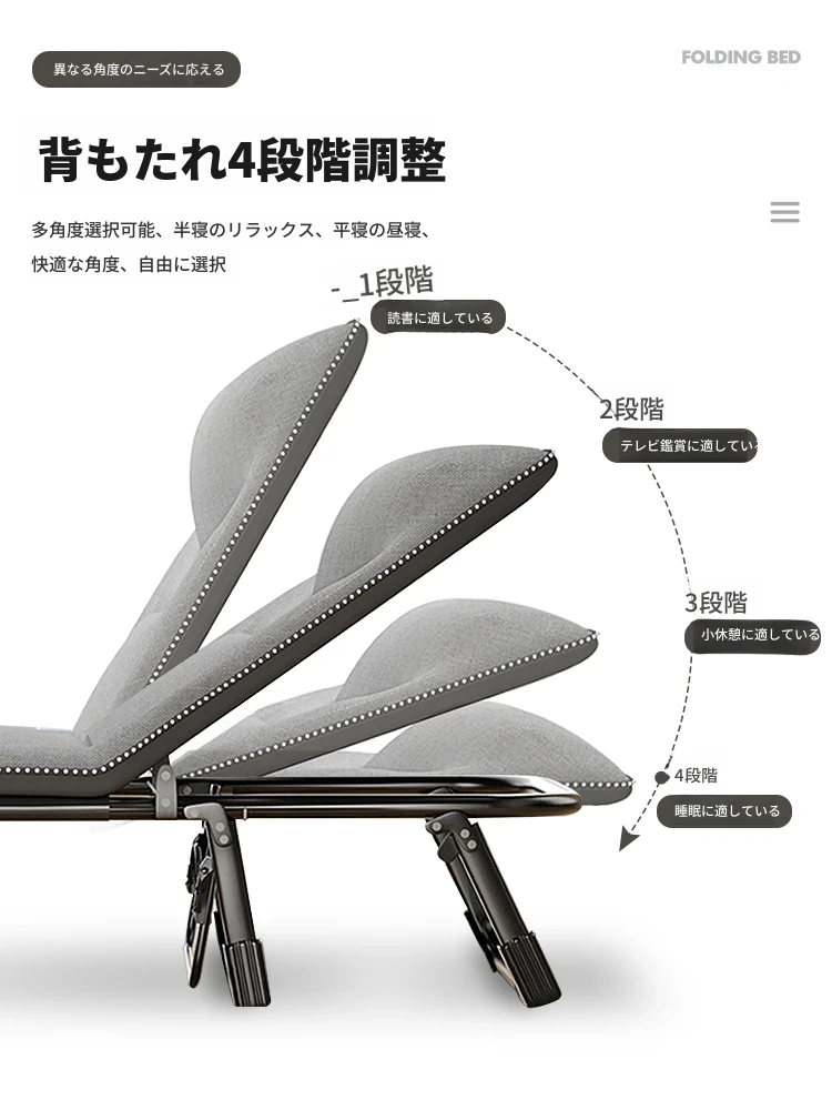 折りたたみシングルベッド!家庭用・オフィス用簡易お昼寝ベッド。大人のための便利な多機能リクライニングチェア、持ち運びも簡単で快適な昼寝をサポートします!