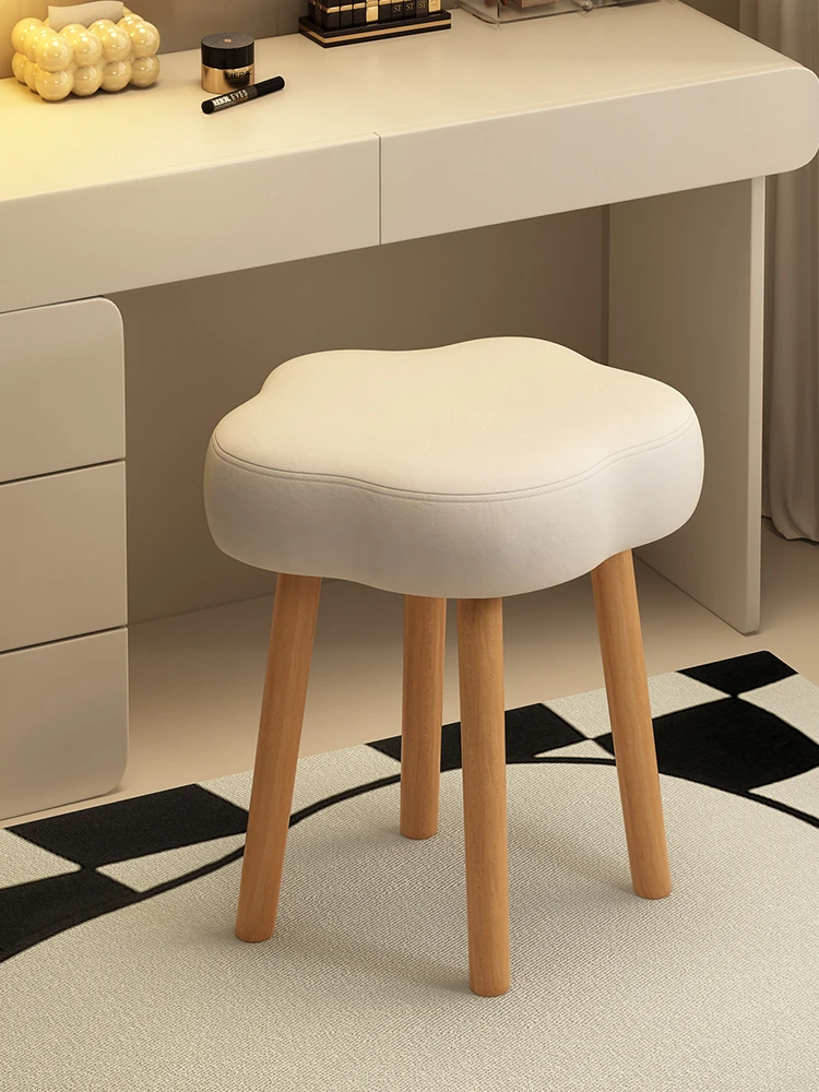 クリーム風化粧台スツール - 女子の寝室にぴったりな雲のようなデザイン!高級感あふれる実木製で、シンプルながら美ネイルに最適なアイテム。おしゃれな空間を演出します!