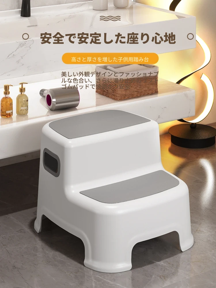 赤ちゃん用洗面台ステップスツール 子供向け洗面台踏み台 滑り止め付き 厚手プラスチック製 トイレやバスルームで使える 高さを増す便利アイテム!