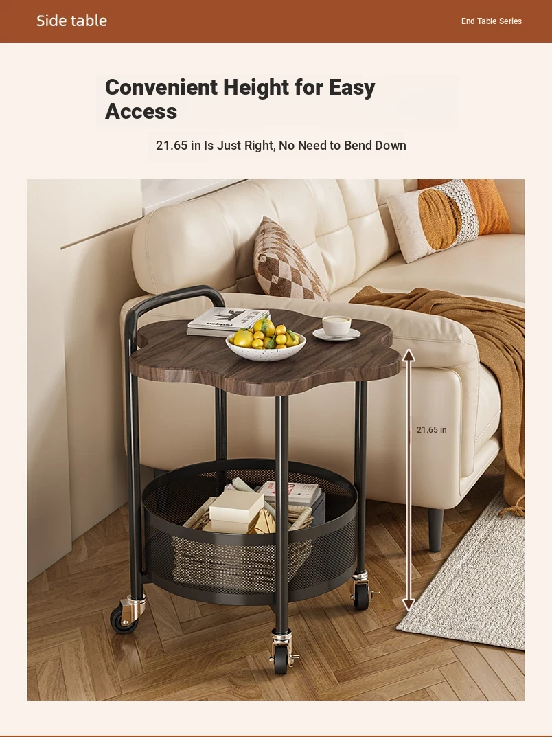 Elegant Vintage-style Mobile Coffee Table - Luxurious Light Retro Side Table with Wheels for Living Room, Bedroom or as a Charming Bedside Cart