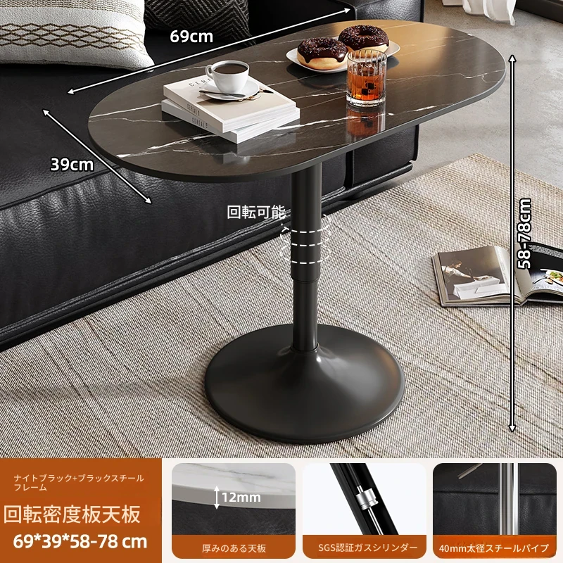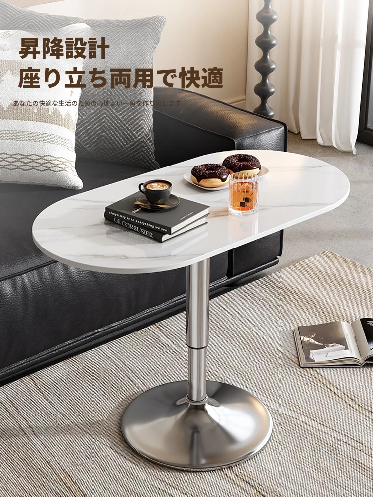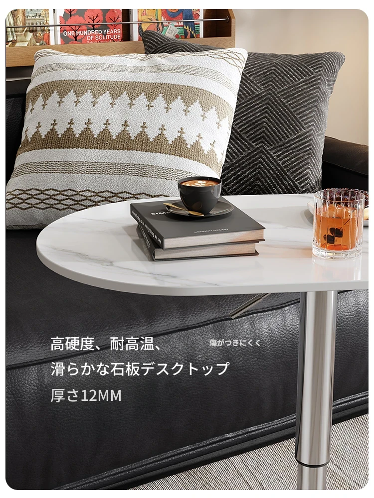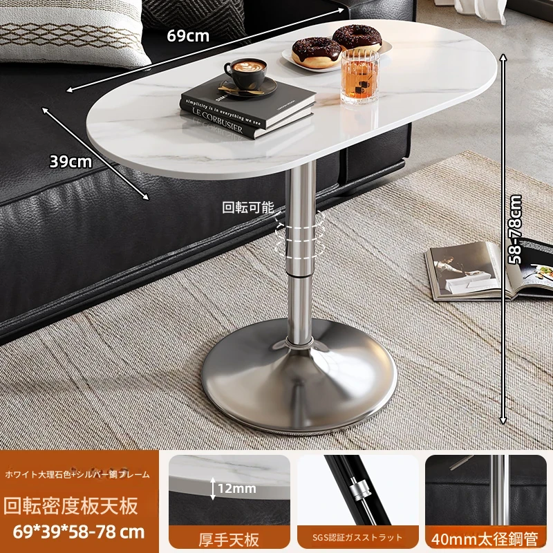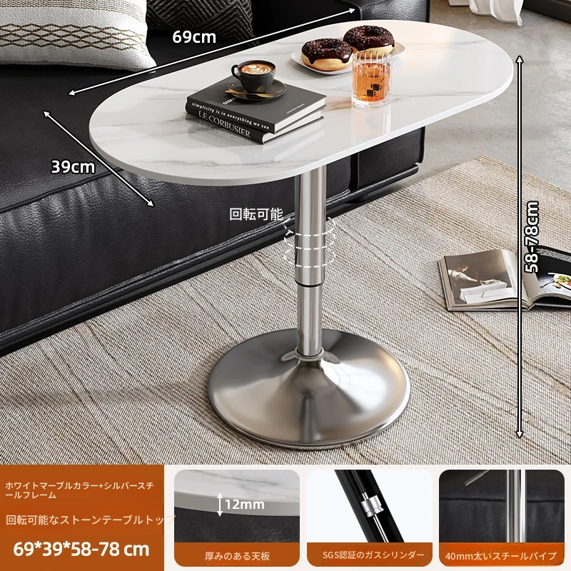 軽やかでスタイリッシュな移動可能な小さなサイドテーブル - リビングルームやバルコニーに最適!昇降機能付きで、ソファやデスクとしても使える便利なデザイン。おしゃれな岩板仕上げで、インテリアに華やかさをプラス!