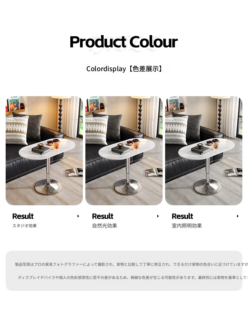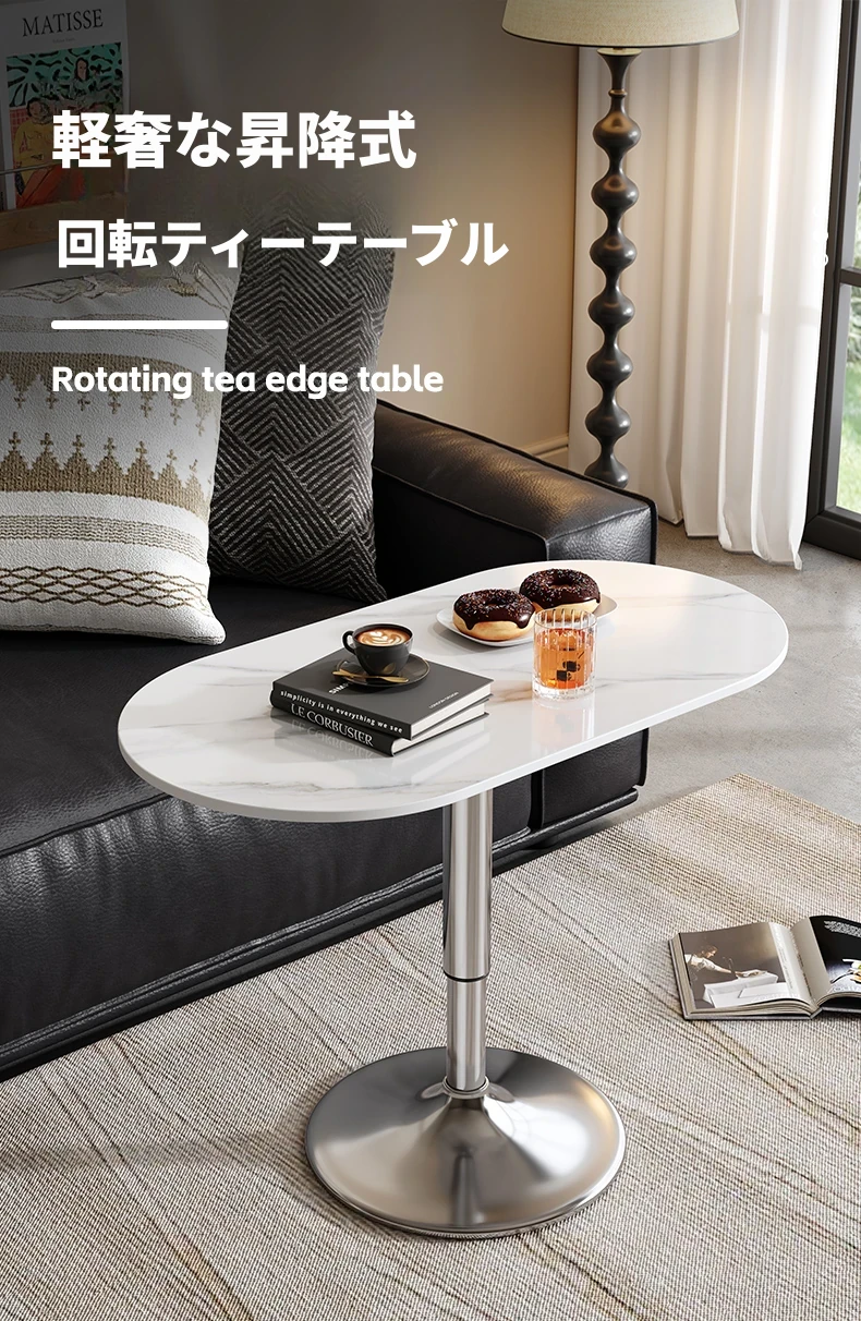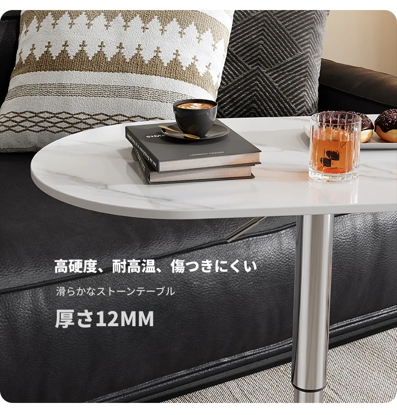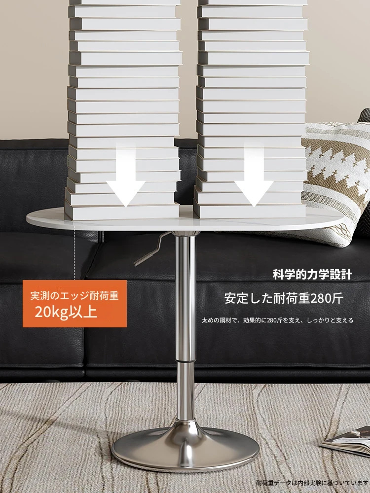 軽やかでスタイリッシュな移動可能な小さなサイドテーブル - リビングルームやバルコニーに最適!昇降機能付きで、ソファやデスクとしても使える便利なデザイン。おしゃれな岩板仕上げで、インテリアに華やかさをプラス!